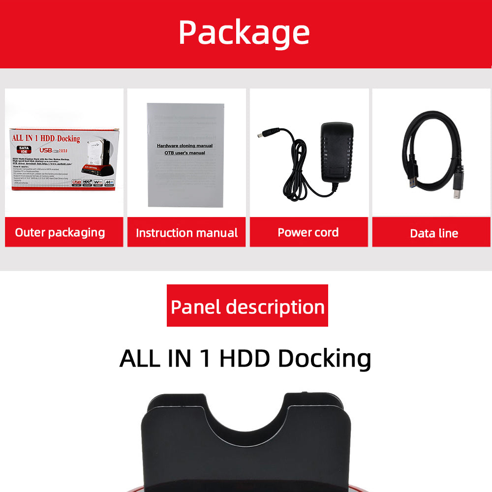 1. Prend également en charge la lecture IDE/SATA Lire à travers le disque dur sur le marché 2.Plug And Play Pas besoin d'installer Conception novatrice/efficace et stable 3. La coque est faite de matière première ABS Forte résistance à l'usure et pas de décoloration 4. Mise à niveau de la puce Transmission plus stable 5. Pas d'angle mort Utilisation d'une conception amovible sans vis Interface visuelle multi-angle Résolu la base du disque dur de la boîte